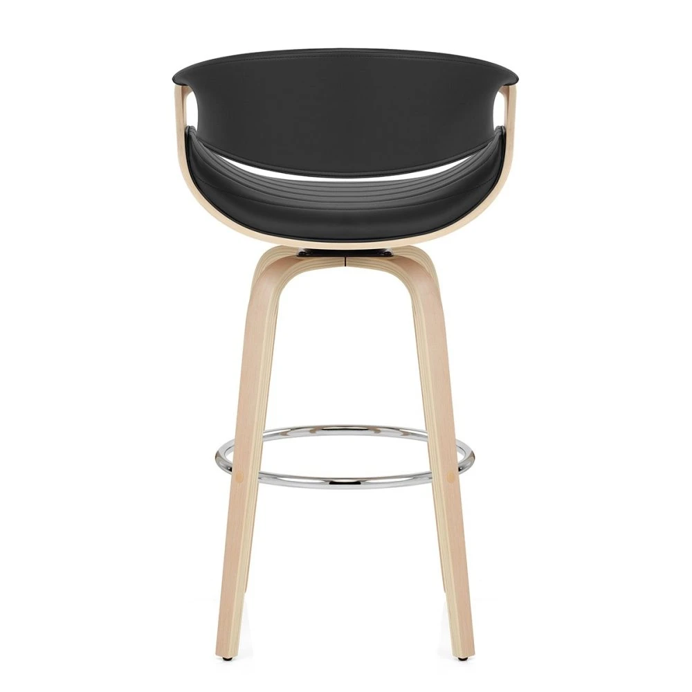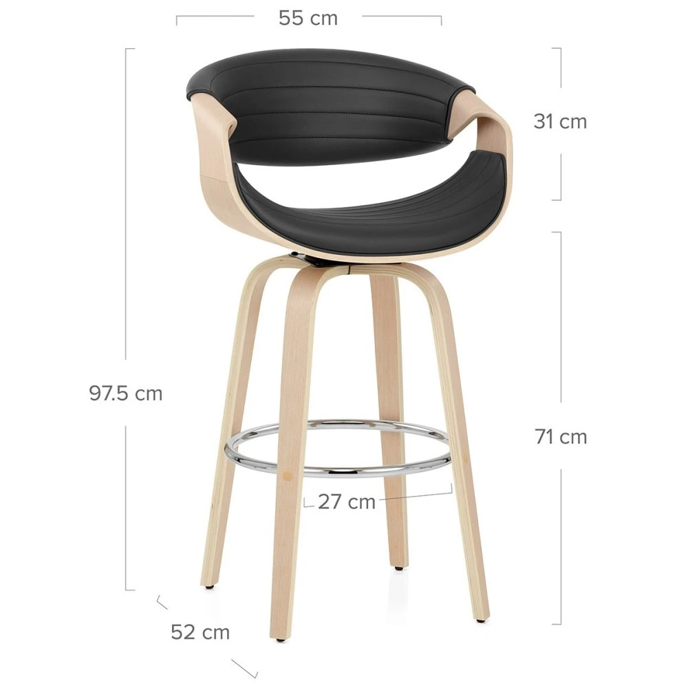 Der Jefferson Barhocker ist die perfekte Symbiose aus zeitlosem Design und moderner Funktionalität, die jedem Barbereich einen Hauch von Raffinesse verleiht. Mit einem einladenden und doch innovativen Design zeichnet sich dieser Hocker durch eine ansprechende Materialkombination aus. Die zweiteilige Sitzfläche, luxuriös mit Kunstleder gepolstert, bietet ein komfortables Sitzerlebnis und unterstreicht die auffällige Ästhetik des Stuhls. Eine äußere Schale aus edlem Eichen-Bugholz umgibt das Design, das durch umgerollte Armlehnen eine elegante Note erhält. Feine Details wie akzentuierte Nähte und ein paspelierter Rand vervollständigen das hochwertige Erscheinungsbild dieses Möbelstücks. Das robuste Gestell verfügt über eine Drehplatte für maximale Flexibilität. Um unschönen Kratzer vorzubeugen, sind die Füße mit Schutzpolstern versehen.