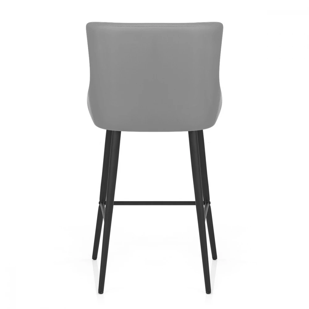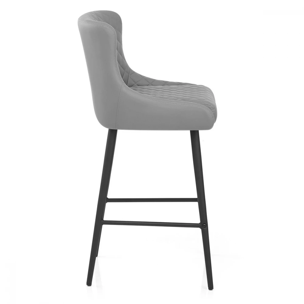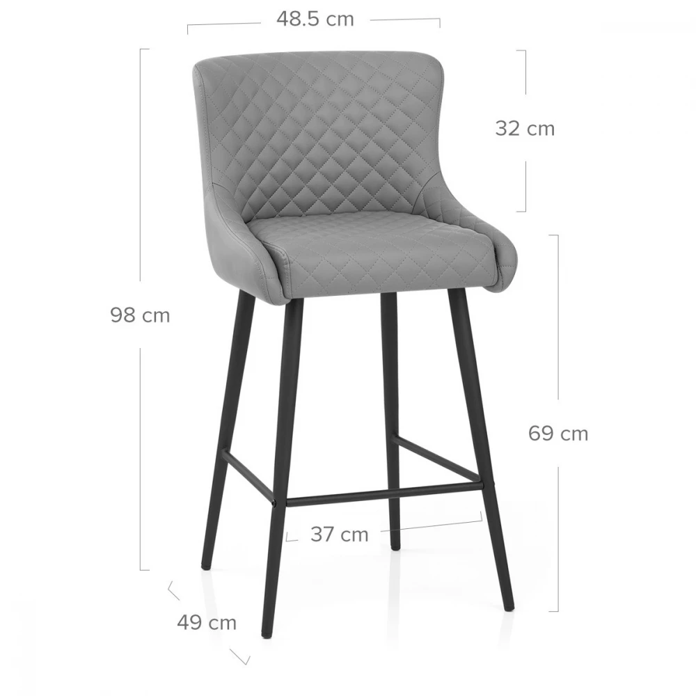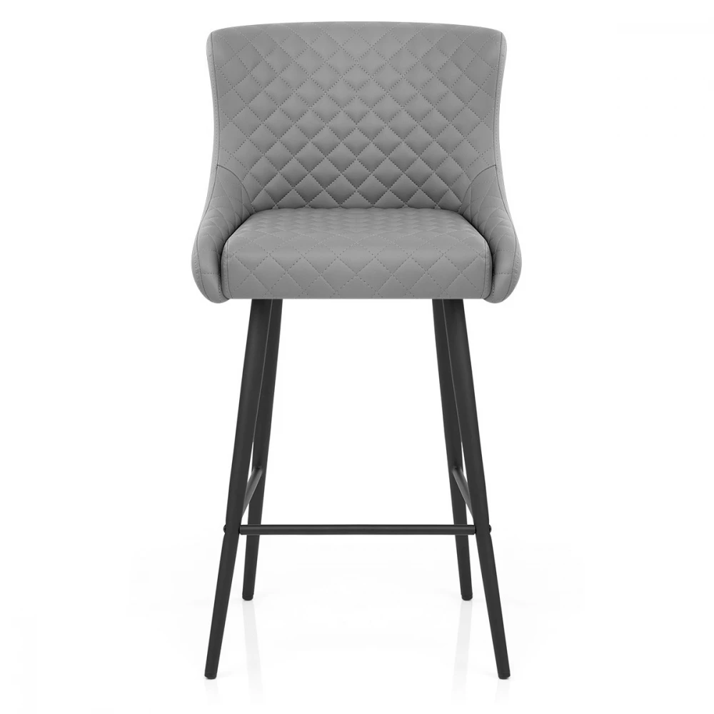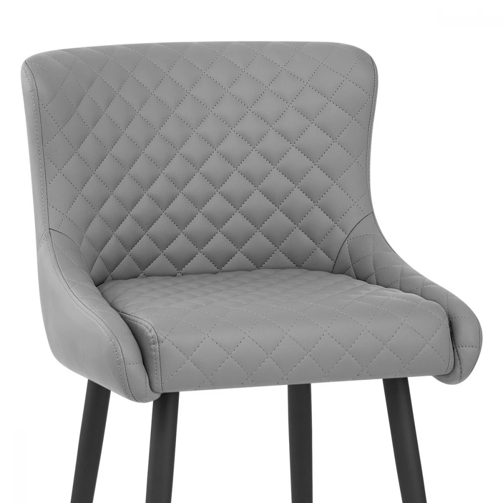 Dieser stilvoller Kunstleder Barhocker erhebt Ihr Interieur in einem Augenblick und. Eine hohe, geflügelte Rückenlehne und eine dichte Polsterung sorgen dafür, dass der Sitz sehr bequem und stützend ist. Kunstlederpolster deckt das Design ab und sorgt für einen modernen Stil, während Diamantnähte die Vorderseite des Sitzes schmücken, um die Aufmerksamkeit auf sich zu ziehen. Das vierbeinige Gestell ergänzt den Sitz und hat eine dunkelgraue Bürstenmattierung, die einen auffälligen, zeitgemäßen Look verleiht. Mit einer praktischen Fußstütze und schützenden Bodenpolstern ausgestattet.