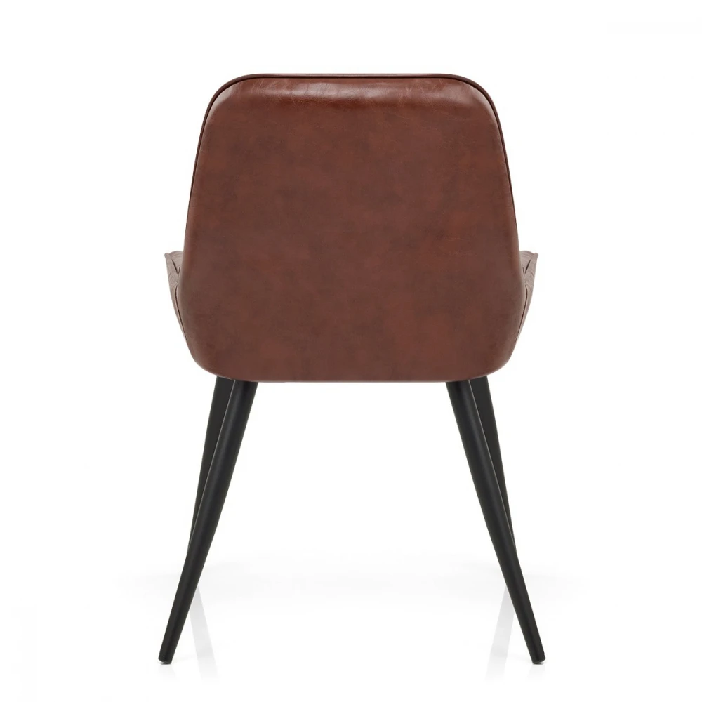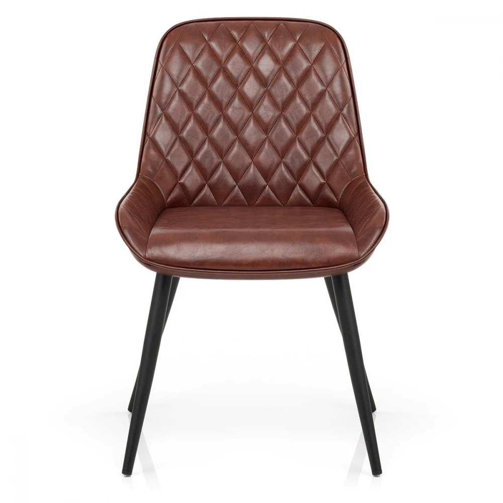 Unser Lincoln Esszimmerstuhl im Antik-Design ist die perfekte Ergänzung für Ihren Ess-, Wohn- oder Küchenbereich. Er eignet sich hierbei als Statement, das auffallen soll und gleichzeitig als Teil einer klassischen Inneneinrichtung. Das rautenförmig abgesteppte Muster auf der inneren Rückenlehne verleiht dem Lincoln hierbei ein vornehmes Erscheinungsbild und gepaart mit der antiken Kunstlederpolsterung besitzt der Lincoln einen unverwechselbaren Retro-Look. Die niedrigen Seitenteile sind mit Kunstlederkedern eingefasst und erstrecken sich um die Krümmung der hohen Rückenlehne herum. Das solide Metallgestell des Stuhls besteht aus vier schwarzen Beinen. Jedes Bein verfügt über einen Bodenschutzstopfen, der Ihre Oberflächen vor Beschädigungen schützt.