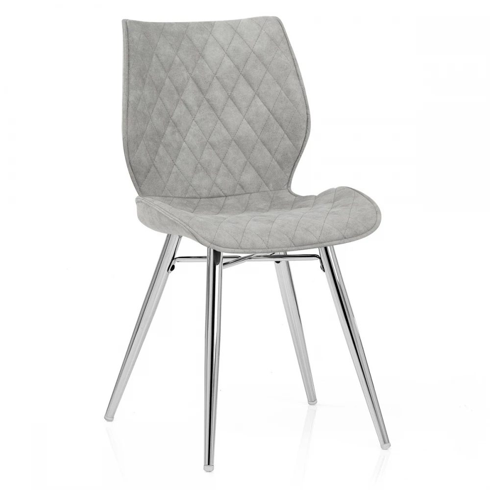 Der Lux Esszimmerstuhl ist ein bemerkenswertes Stück mit zeitgenössischen Möbeldesign. Auffallend und stilvoll, der Sitz und die Rückseite haben ein einzigartiges erweitertes Design, das auch mit gesteppten Diamantnähten geschmückt ist. Die Polsterung im antikem Kunstleder und die Wölbung des Sitzes an den Seiten bietet mehr Komfort beim sitzen. Die vier Beine sind chrompoliert und verjüngen sich auf den Boden für eleganten Stil. Das Kreuz zwischen den Beinen bietet zusätzliche Stärke und Gummistopfen unter den Beinen sind angebracht, um den Boden zu schützen.