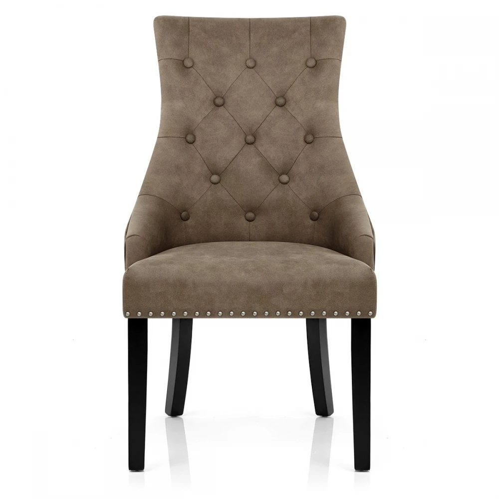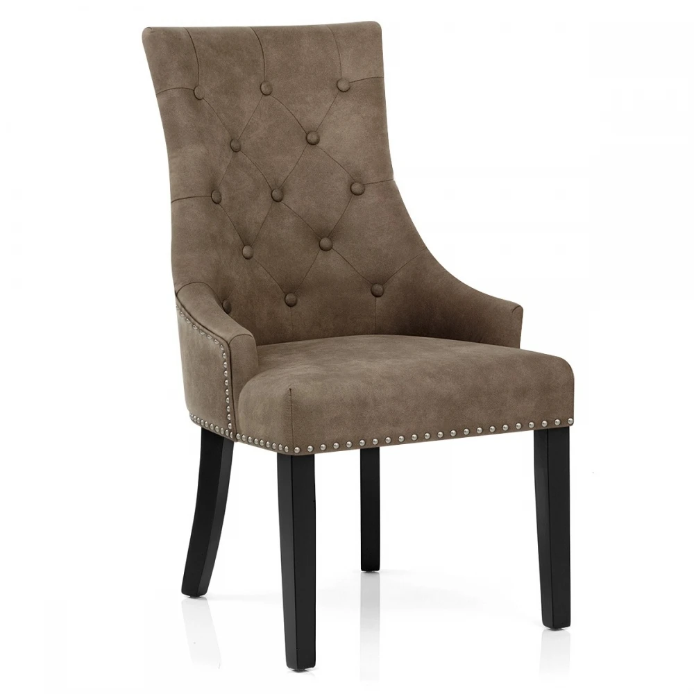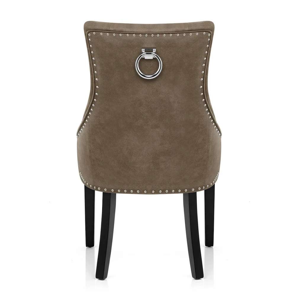 Ein beliebtes, glamouröses Design wird mit dem rustikalen Esszimmerstuhl Ascot Antik Braun hervorgehoben. Das antik-braune Kunstleder bietet einen Vintage-Look und ist luxuriös mit abgesteppten Knöpfen, Chromnieten und einem Chromring auf der Rückseite ausgestattet. Der Sitz sieht nicht nur Gut aus, hat auch einen Rahmen mit Gürtel für luxuriösen Komfort. Ein göttliches dunkles Wenge-Finish ziert die Beine, die aus massivem Holz für Festigkeit und Stabilität gefertigt sind. Bodenschutzstopfen aus Gummi sind eine abschließende praktische Ergänzung zu diesem fantastischen Stück.