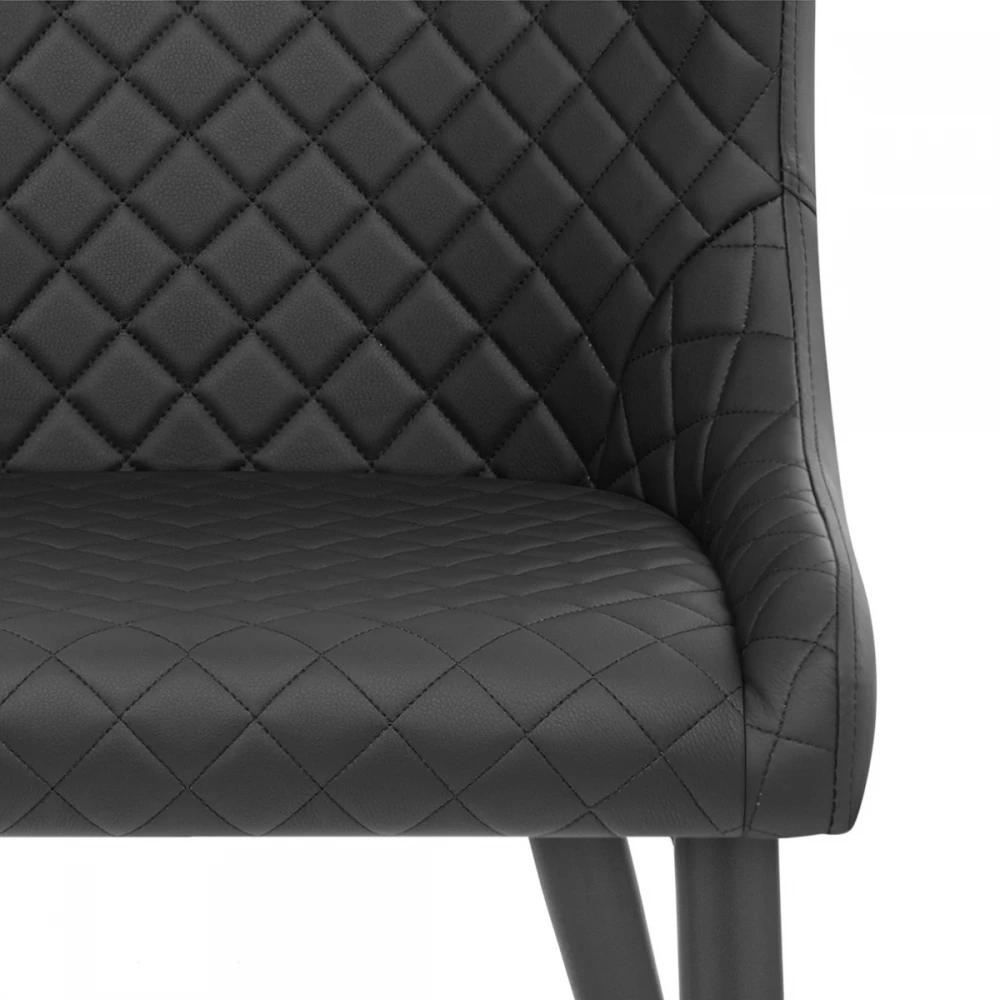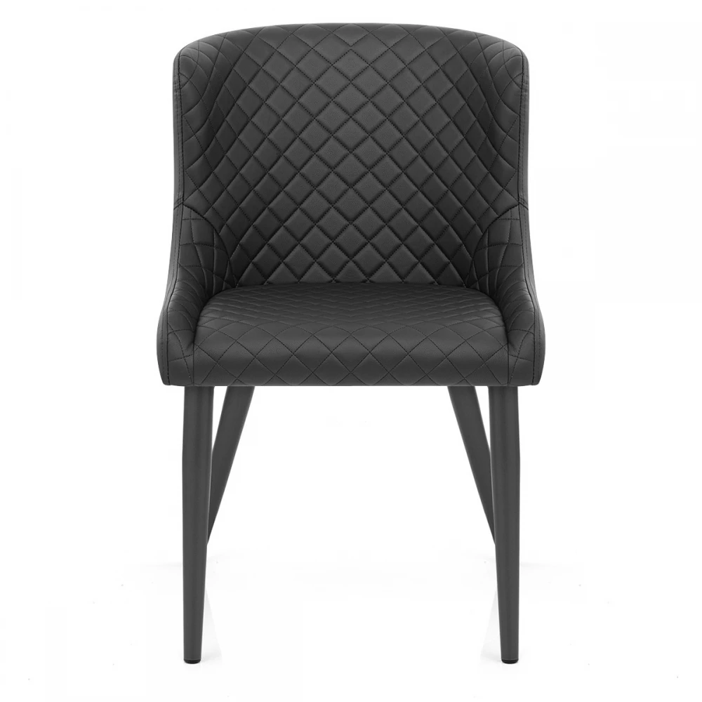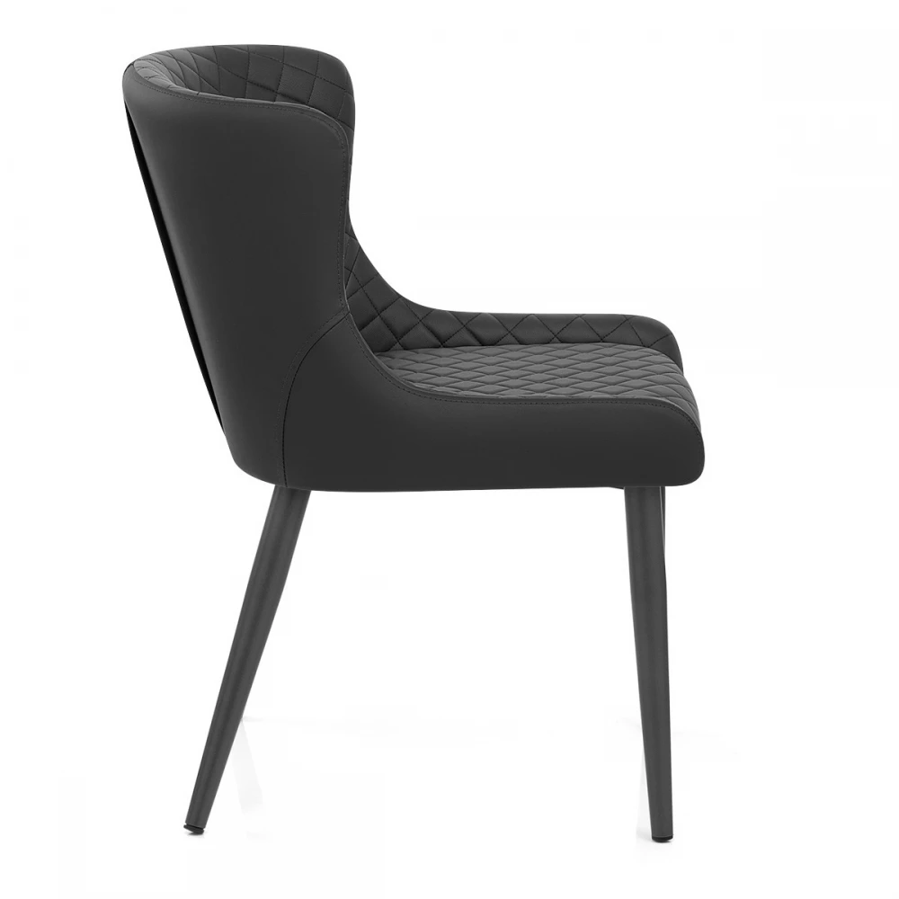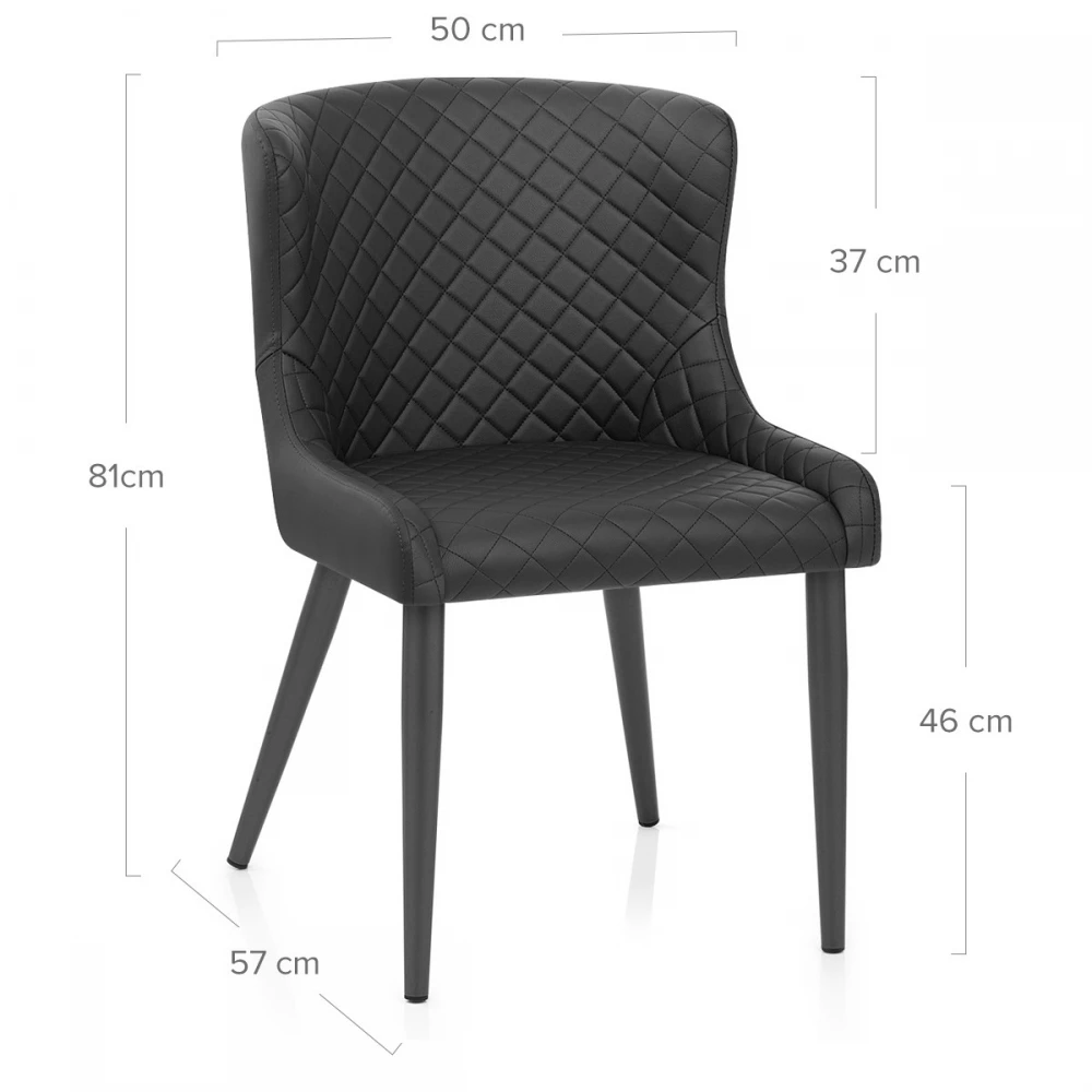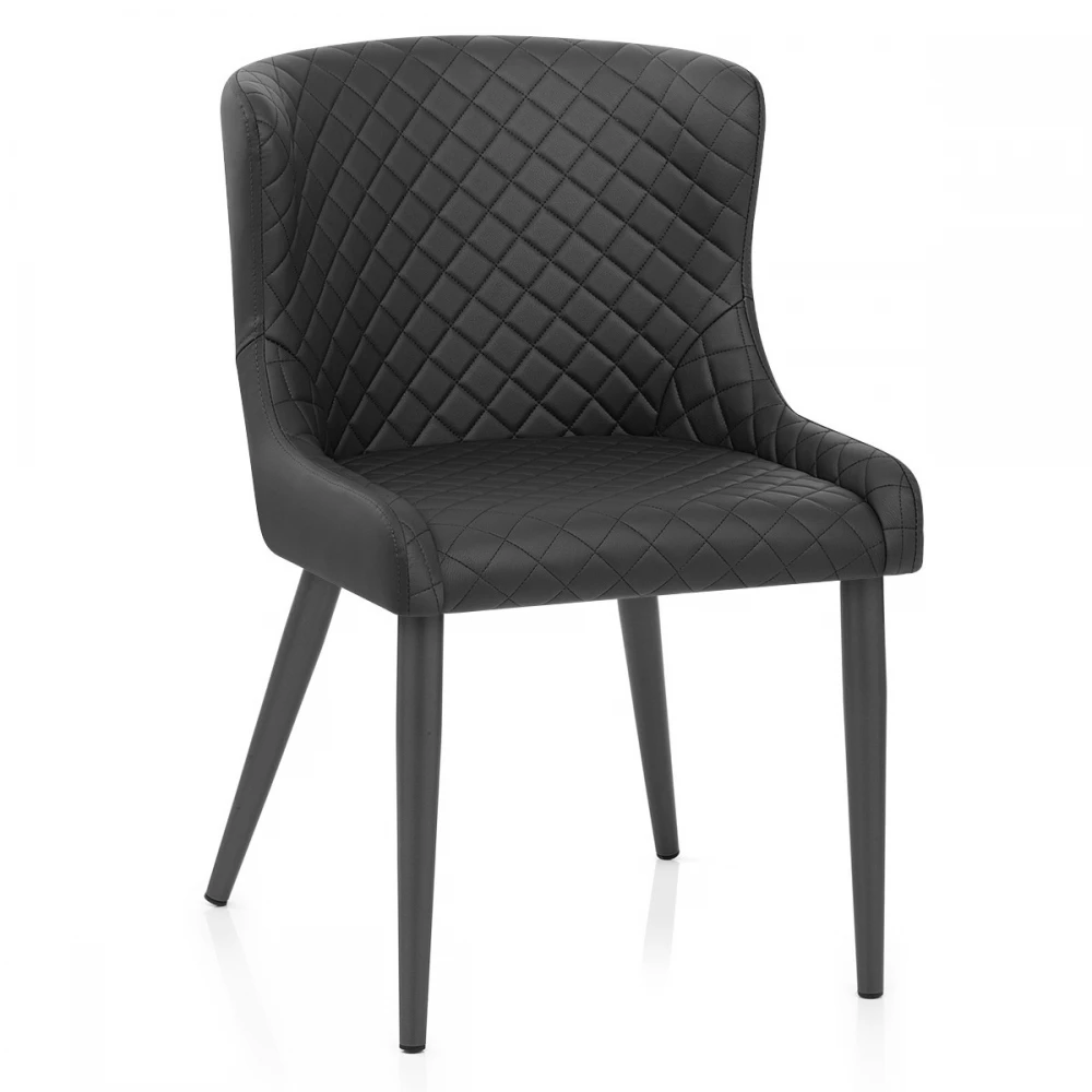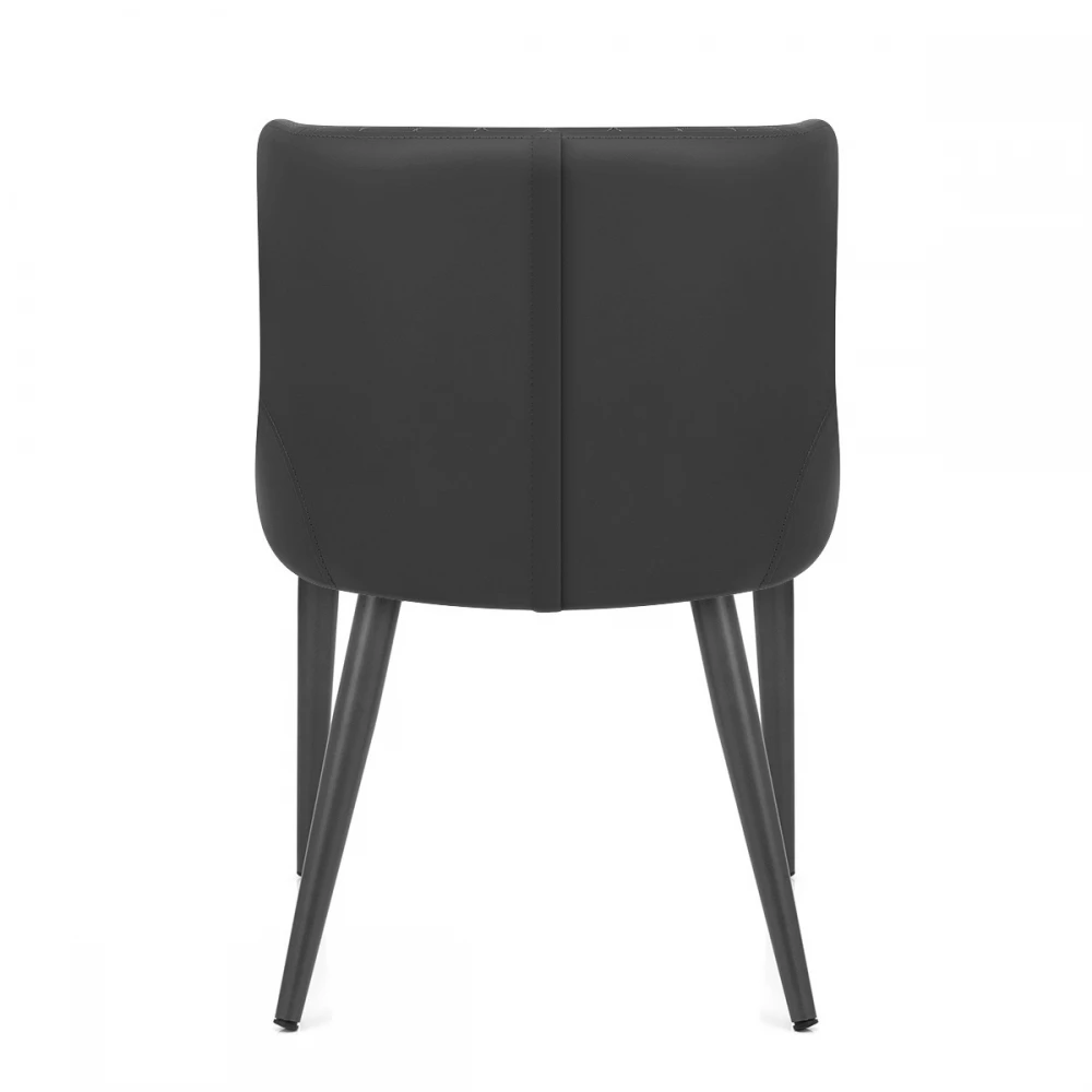 Der exklusive und schlagkräftige Provence Esszimmerstuhl ist ein hochwertiges Möbelstück für den Essbereich. Ein formschöner, ausgestellter Sitz und eine Rückenlehne bieten zusammen mit den gepolsterten Kunstlederpolstern einen bequemen Sitzkomfort. Dieses dynamische Design hat Steppnähte auf der Vorderseite für einen unwiderstehlichen Reiz. Verjüngte Metallbeine treffen den Boden mit Stil und sind mit einem modischen dunkelgrauen Satin-Finish ausgestattet, der den Sitz ergänzt. Währenddessen bleiben Ihre Böden mit einem Gummistopfen unter jedem Bein geschützt.