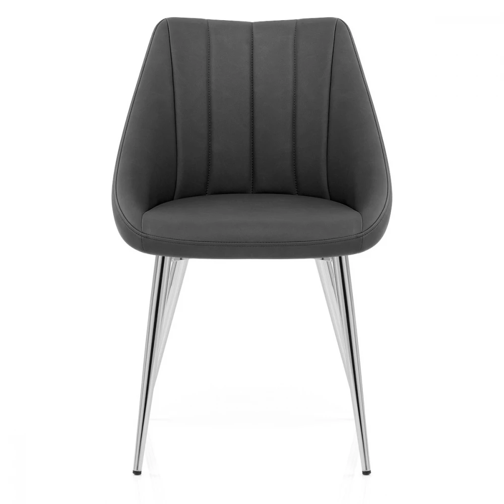 Wenn Sie ein Retrostil suchen, ist der Kunstleder Esszimmerstuhl Tempo genau die richtige Wahl für Sie. Mit Kunstleder bezogen, ist die umfassende Form des Sitzes zweifellos einladend. Die mittelhohe Rückenlehne sieht gut aus, denn fünf vertikal abgesteppte Linien verlaufen nach vorne. Diese Segmente konturieren den gepolsterten Sitz und tragen zum entspannten Gefühl bei. Vier Chrom Beine stützen und ergänzen den schönen Sitz darüber. Unter jedem Stuhlbein befinden sich Schutzstopfen, um den Boden frei zu halten.