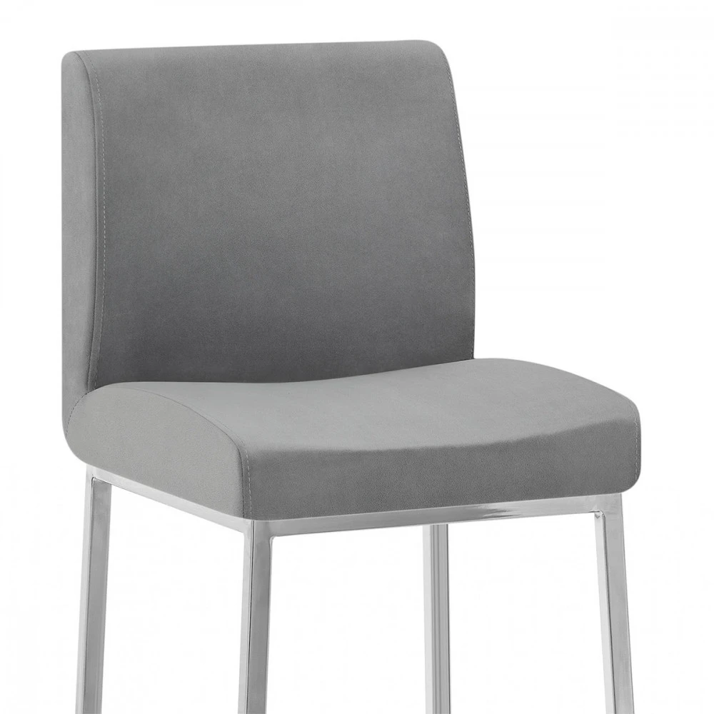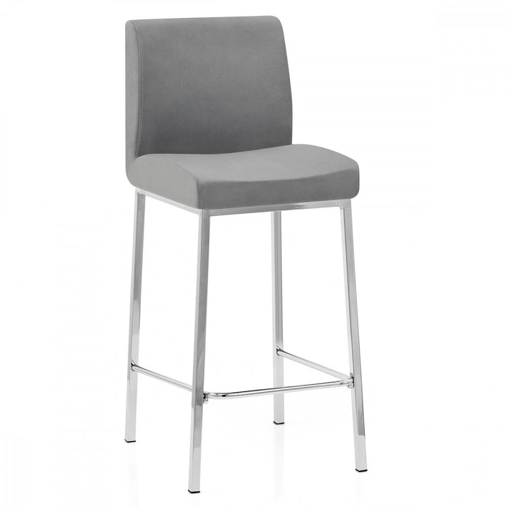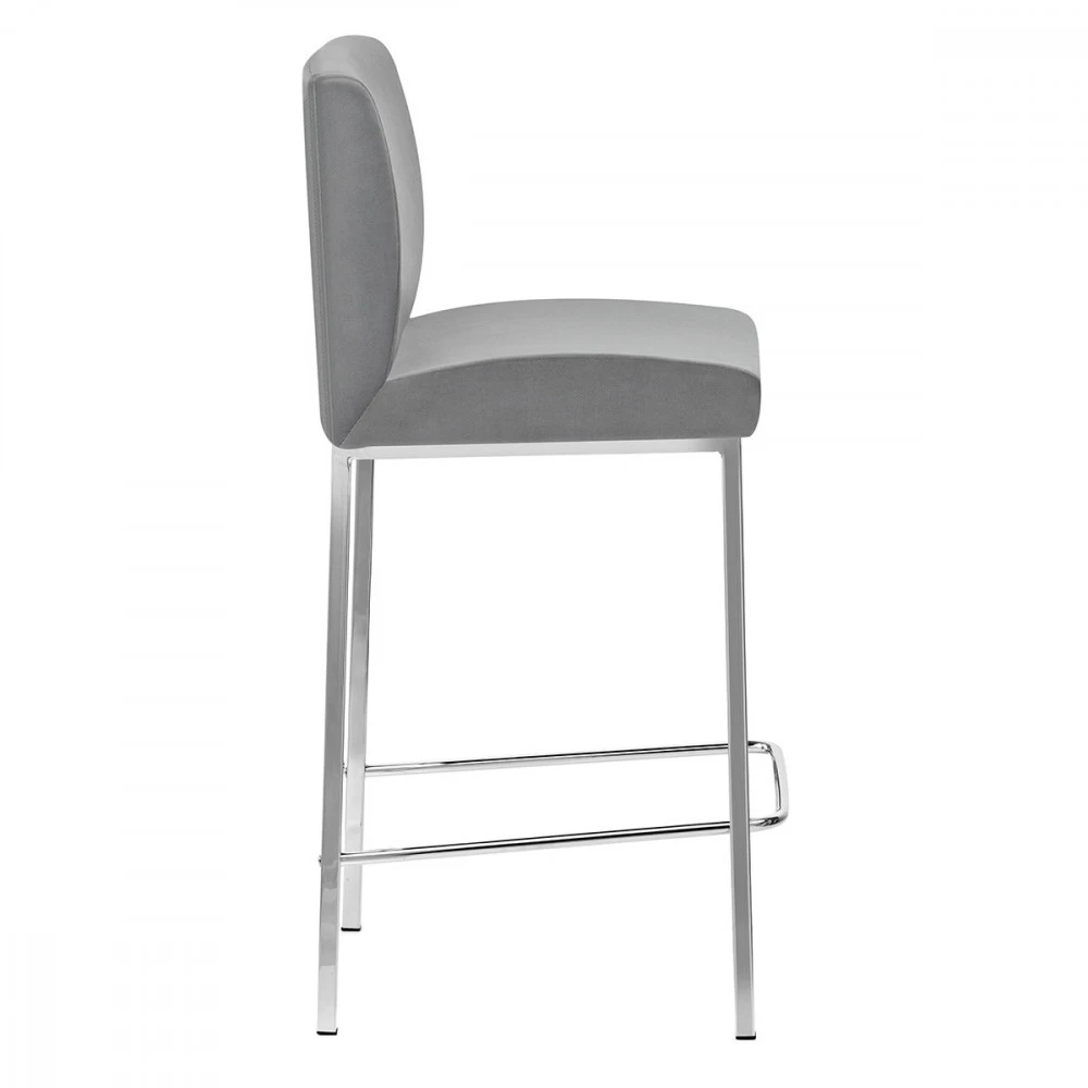 Der Samt Barhocker Pacino ist ein wunderschönes Design, der für den Barbereich oder Küchenbereich ideal ist. Der dicht gepolsterte Sitz mit wunderschönen Samt bezogen lädt zum entspannen ein. Die hohe Rückenlehne sorgt für guten Komfort und Halt. Das vierbeinige Gestell, das auf der Höhe einer Küchenarbeitsplatte aufgestellt ist, hat ein poliertes Chrom-Finish. Schutzstopfen sind zum Schutz Ihrer Bodenfläche unter allen Beinen angebracht.