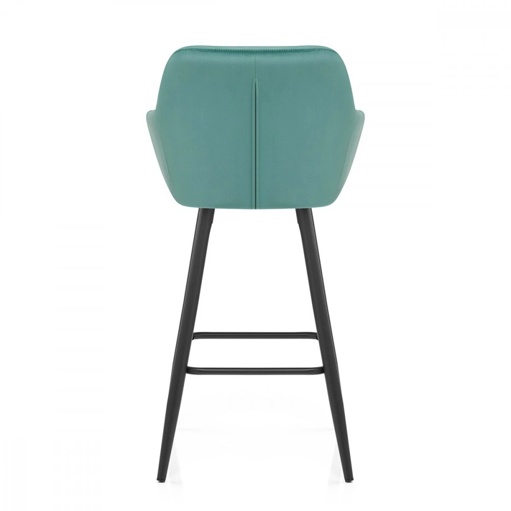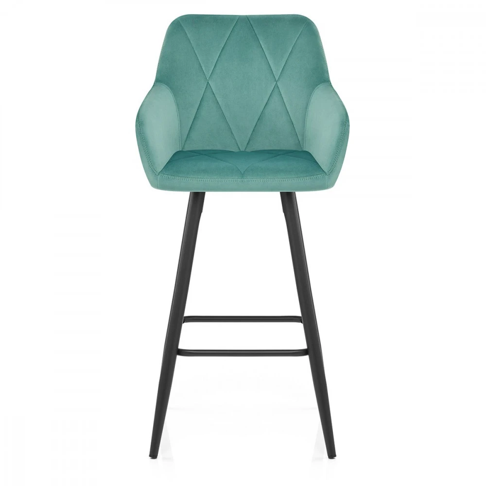 Der modiche Samtsitz des Lanson Barhockers hat eine hohe, stützende Rückenlehne, die in gepolsterte Armlehnen übergeht. Während die inneren Armlehnen und die äußere Rückenlehne eine glatte, schlichte Oberfläche haben, ist die innere Rückenlehne mit großen Rautensteppungen abgesteppt, um ein ausgeprägteres Gefühl von Komfort zu vermitteln. Der Samtsitz des Lanson ruht auf einem Metallgestell mit fester Höhe, das für die Verwendung in normaler Thekenhöhe konstruiert ist. Vier spitz zulaufende Beine werden von einer quadratischen Fußstütze gestützt und sind mit einem satinierten schwarzen Finish versehen, das gut zur Farbe des Sitzes passt. An der Basis jedes Beins befindet sich ein Bodenschutzstopfen, der vor Schrammen und Kratzern schützt.