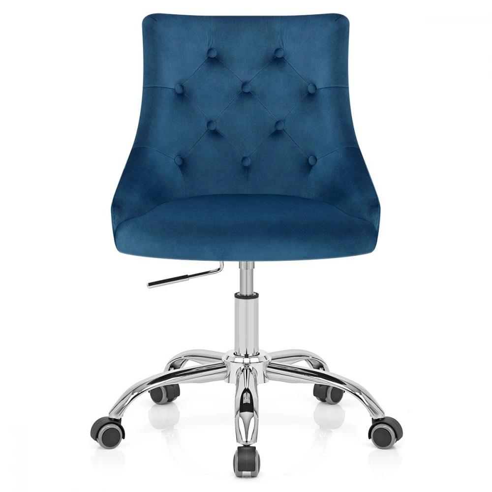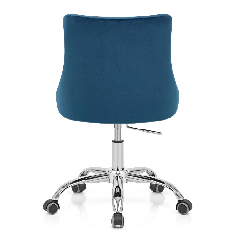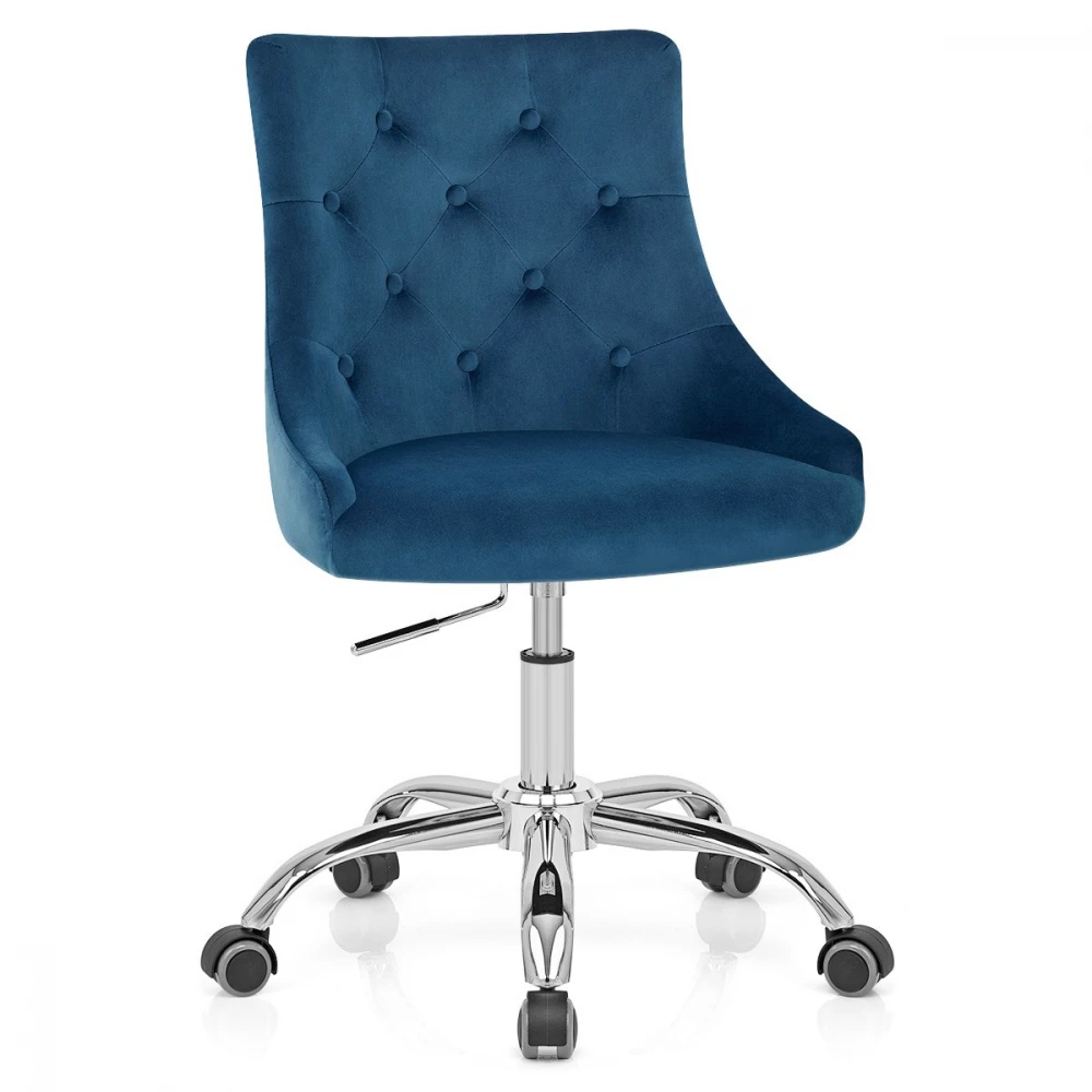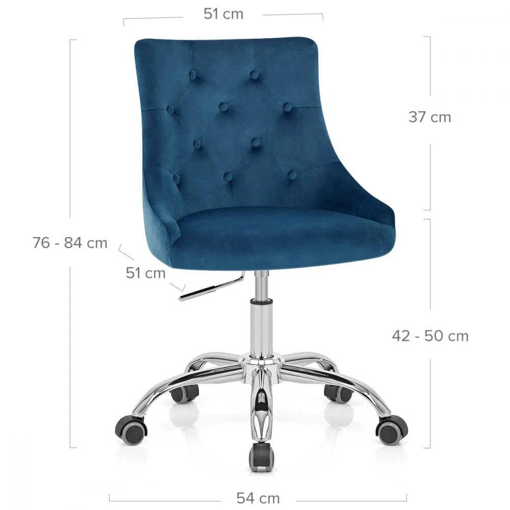 Verleihen Sie Ihrem Arbeitsbereich mit unserem Bürostuhl Sofia eine ungekannte Eleganz. Dieses hochwertige Produkt ist die genau richtige Unterstützung während langer Arbeitsstunden. Denn dieser Bürostuhl verfügt über einen komfortablen Samtüberzug, der durch eine geschwungene Rückenlehne komplettiert wird. Der inneren Rückenlehne werden durch raffiniert platzierte Knöpfe und Nähte ein interessantes Erscheinungsbild verliehen. Hierdurch wohnt dem Stuhl eine zeitgenössische Klassik inne. Dies macht ihm zum Komfortmittelpunkt und Blickfang Ihrer gesamten Büroeinrichtung. Die in Chrom ausgeführten 5 Speichen des Sofia unterstreichen seine klassische Eleganz nur noch zusätzlich und verleihen ihm durch die eingefassten Rollen Mobilität. Diese Rollen bestehen zum Schutz Ihrer Bodenfläche aus Nylon.