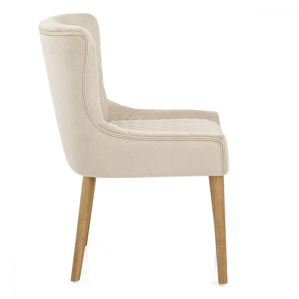 Der Samt Esszimmerstuhl City macht den zeitgenössischen Stil vielseitig und bietet sich als schicke Begleitung für Ihr Zuhause an. Der Samt Esszimmerstuhl City wird in verschiedenen Orten einen modischen Mittelpunkt bilden, vom Esszimmer bis zum Arbeitszimmer. Der schöne Samtsitz hat eine bequeme Gesamtqualität und umfasst ein modisches Design mit geflügelter Rückenlehne. Die abgerundeten Beine sind in poliertem Eichenholz ausgeführt und ergänzen den Sitz. Unter jedem Bein befindet sich ein Gummistopfen, der Ihre Böden in einem guten Zustand hält.