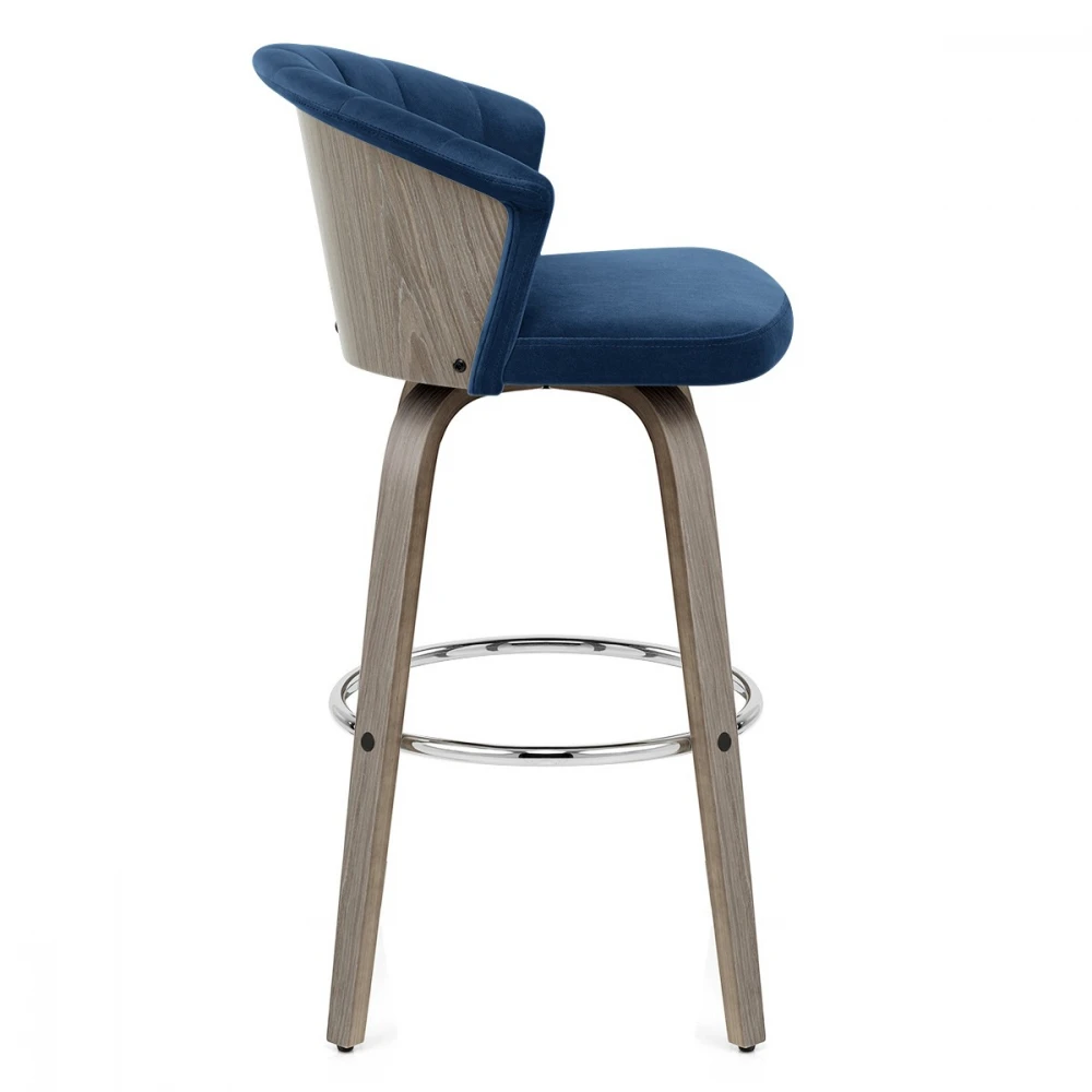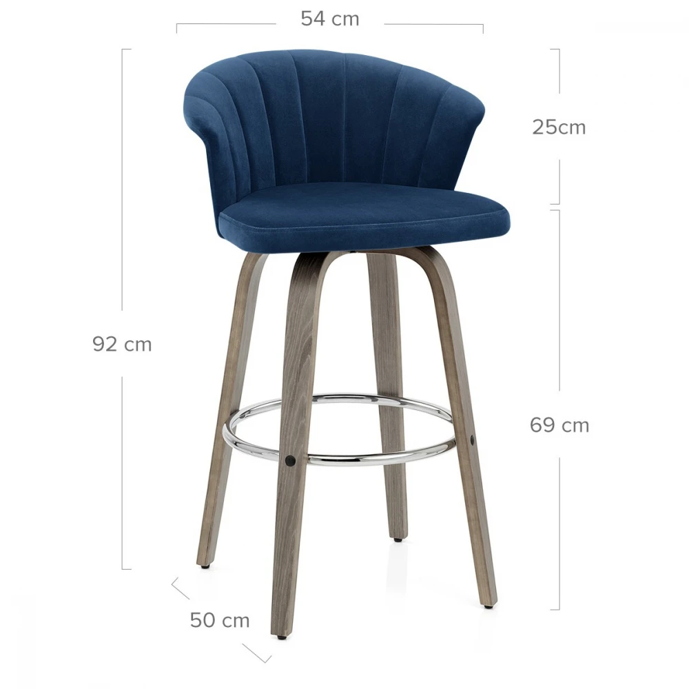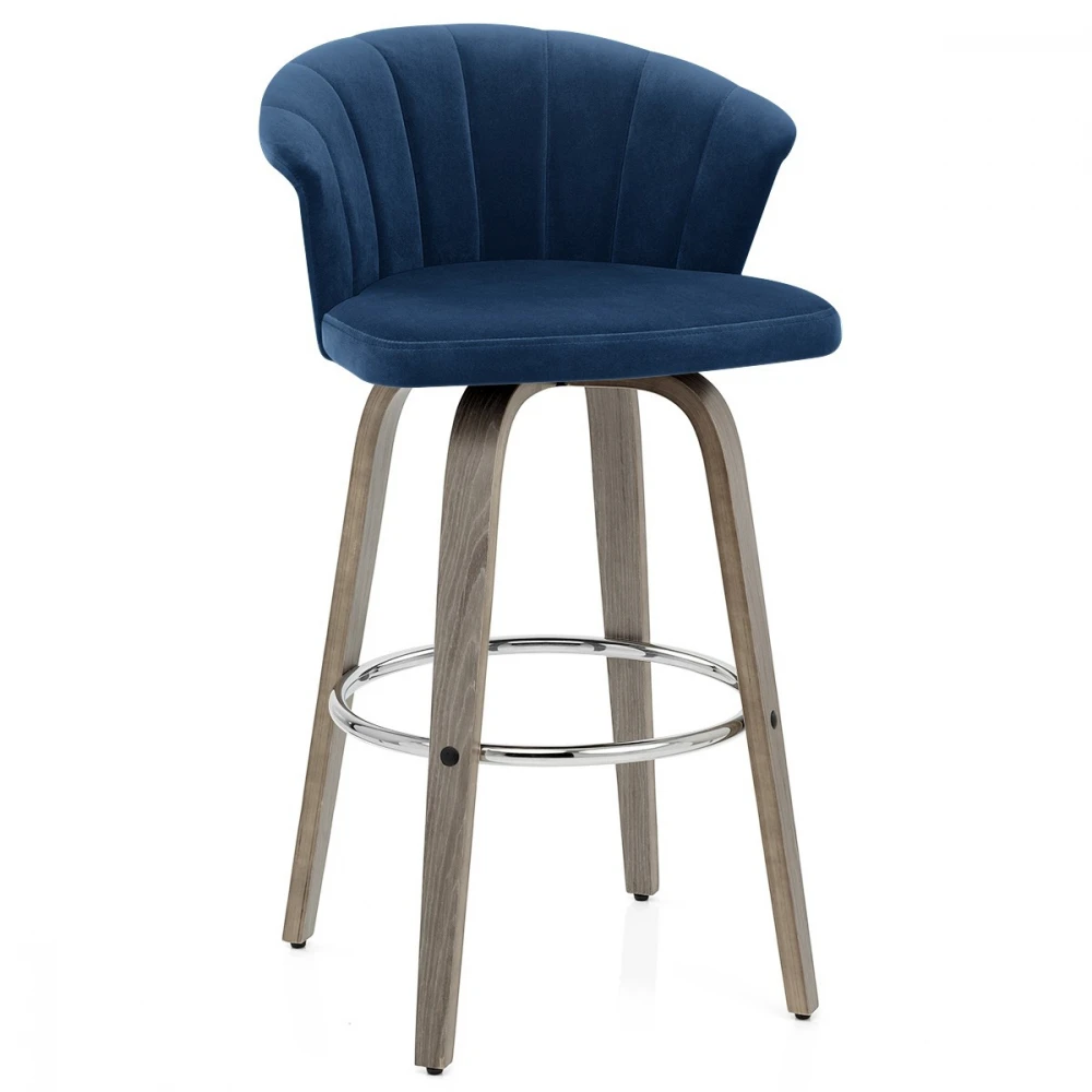 Bringen Sie Ihre Küche zum Singen mit dem wunderschönen Samtbarhocker Concerto. Das Polster ist für mehr Komfort dicht gepolstert und steht im Kontrast zur gewölbten Rückenlehne, die mit vertikal gestickten Details versehen ist. Die Rückseite der Rückenlehne ist von glattem grauem Bugholz umgeben. Passend zur Rückenlehne stützt ein grauer Bugholzrahmen den Sitz, der auf einer Drehplatte ruht, die für 360-Grad-Drehung ausgelegt ist. Die vier Beine sind in fester Küchenhöhe gefertigt und mit einer Fußstütze aus poliertem Chrom versehen. An der Unterseite jedes Beins befinden sich Schutzstopfen, um die Pflege Ihres Bodens zu erleichtern.