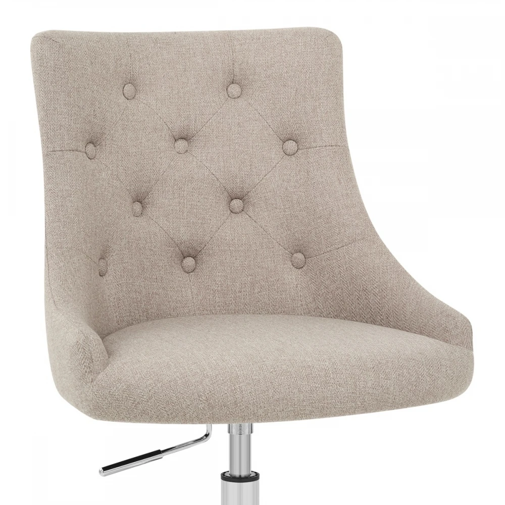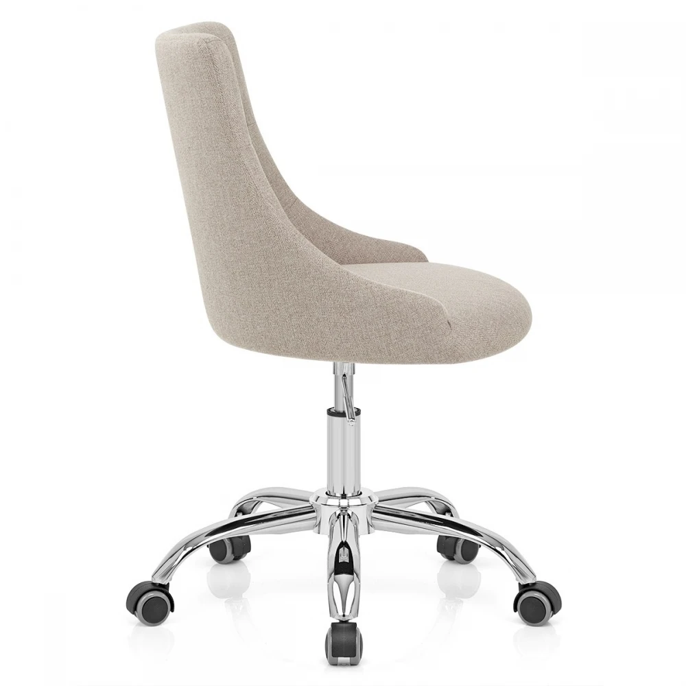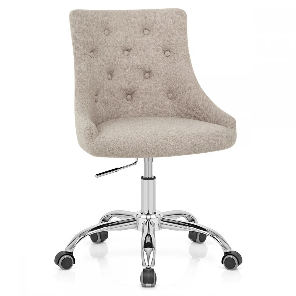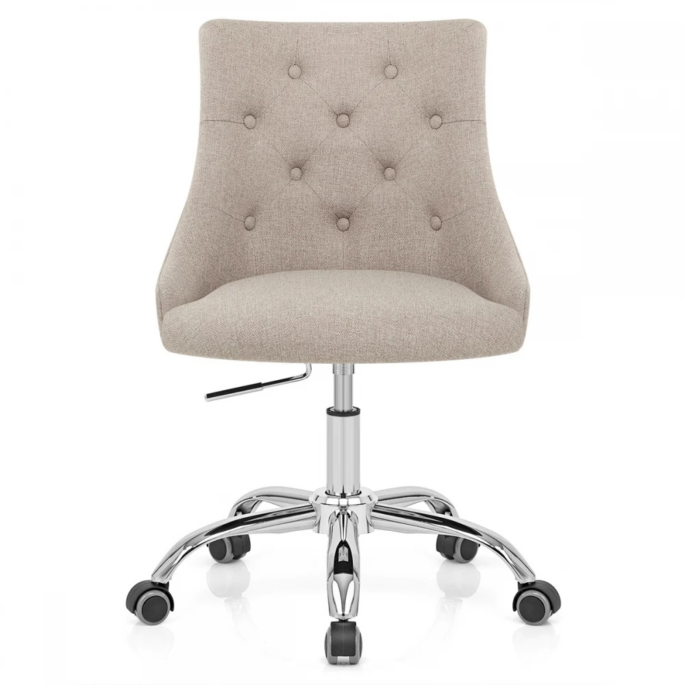 Der fabelhafte Sofia Bürostuhl verleiht Ihrem Büro eine luxuriöse und funktionale Mischung, die an vielen Standorten gut funktioniert. Stoff deckt den Sitz ab und ist mit Schaumstoff mit hoher Dichte gepolstert, während der umlaufende Rücken Ihren Körper für beispielhaften Komfort umarmt. Knöpfe und Stickereien sorgen für ein luxuriöses Gefühl und machen es zu einem eleganten Möbelstück. Der verchromte 5-Speichen-Fuß verfügt über Rollen für eine einfache Bewegung auf allen Etagen. Sie wird über den Gasliftmechanismus am Sitz befestigt, so dass Sie die Höhe einstellen und um 360 Grad drehen können.